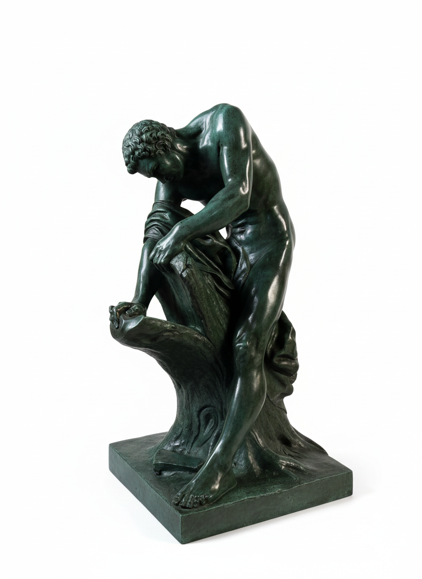 Vide grenier en ligne et à Toulouse: Bronze d’aprés Edme Dumont « Milon de crotone fendant un tronc d’arbre Epoque XIXème