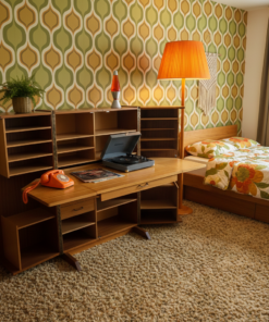 C’est l’ancêtre parfait du bureau de télétravail moderne. On peut « fermer le bureau » à la fin de la journée pour cacher le désordre et déconnecter visuellement. -