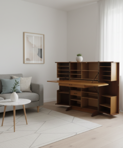 C’est une pièce fascinante ! Ce meuble est un grand classique du design intelligent du milieu du XXe siècle (années 50-60). On l’appelle souvent le « Magic Box » ou « Bureau Boîte ».