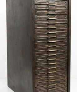 Ce meuble est un meuble à clapets industriel, souvent appelé « meuble de métier ». C’est une pièce iconique du design industriel du XXe siècle, particulièrement prisée aujourd’hui pour son esthétique vintage et sa robustesse.