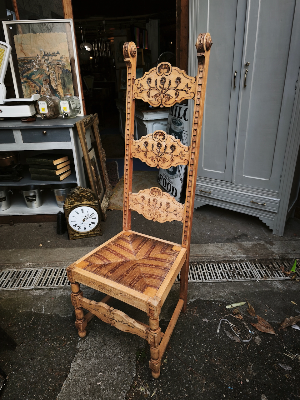 • Antiquités Brocante Chaise paillée dossier haut les Puces d’Oc Quartier St Cyprien antiquités à Toulouse (31)