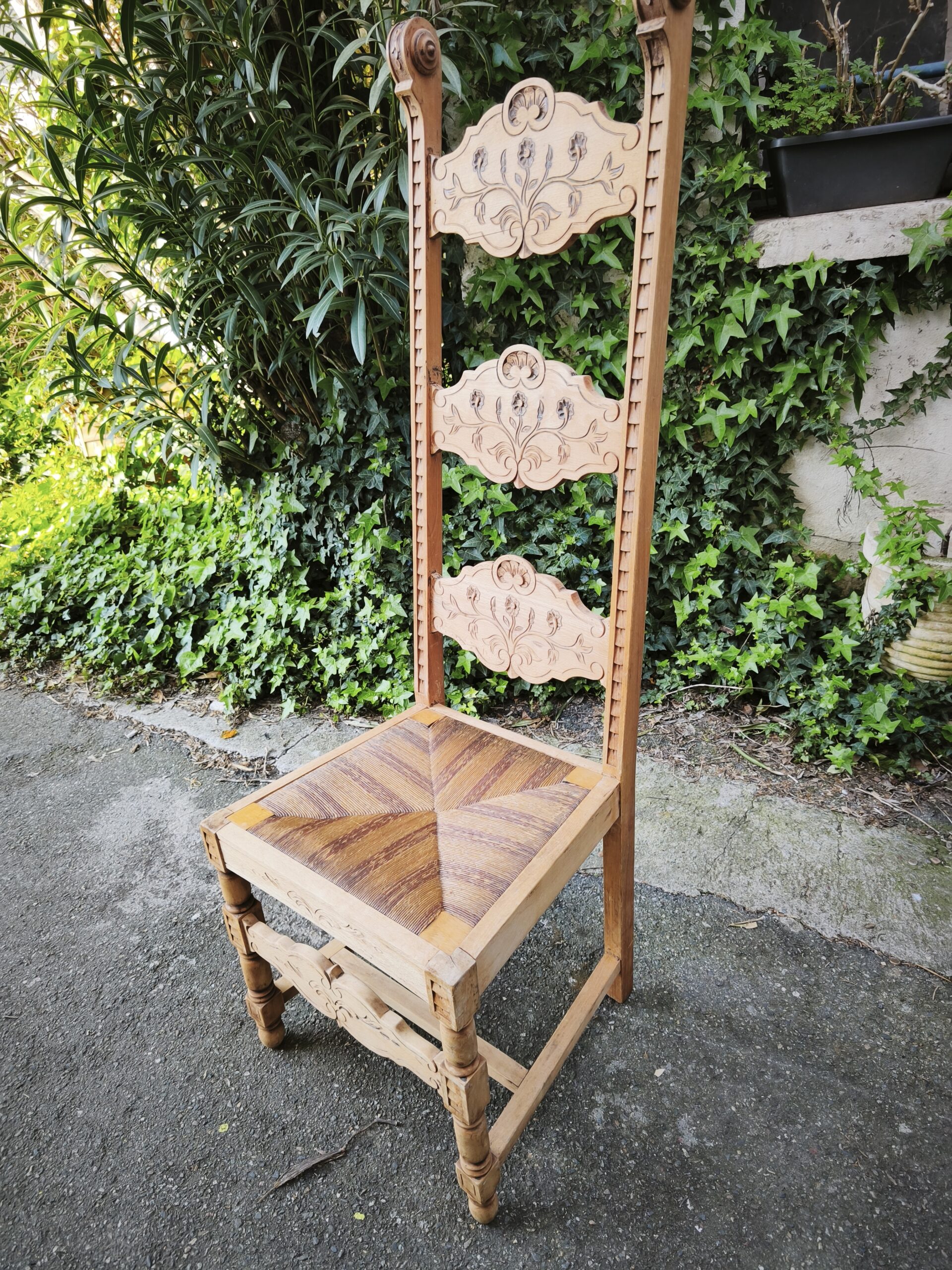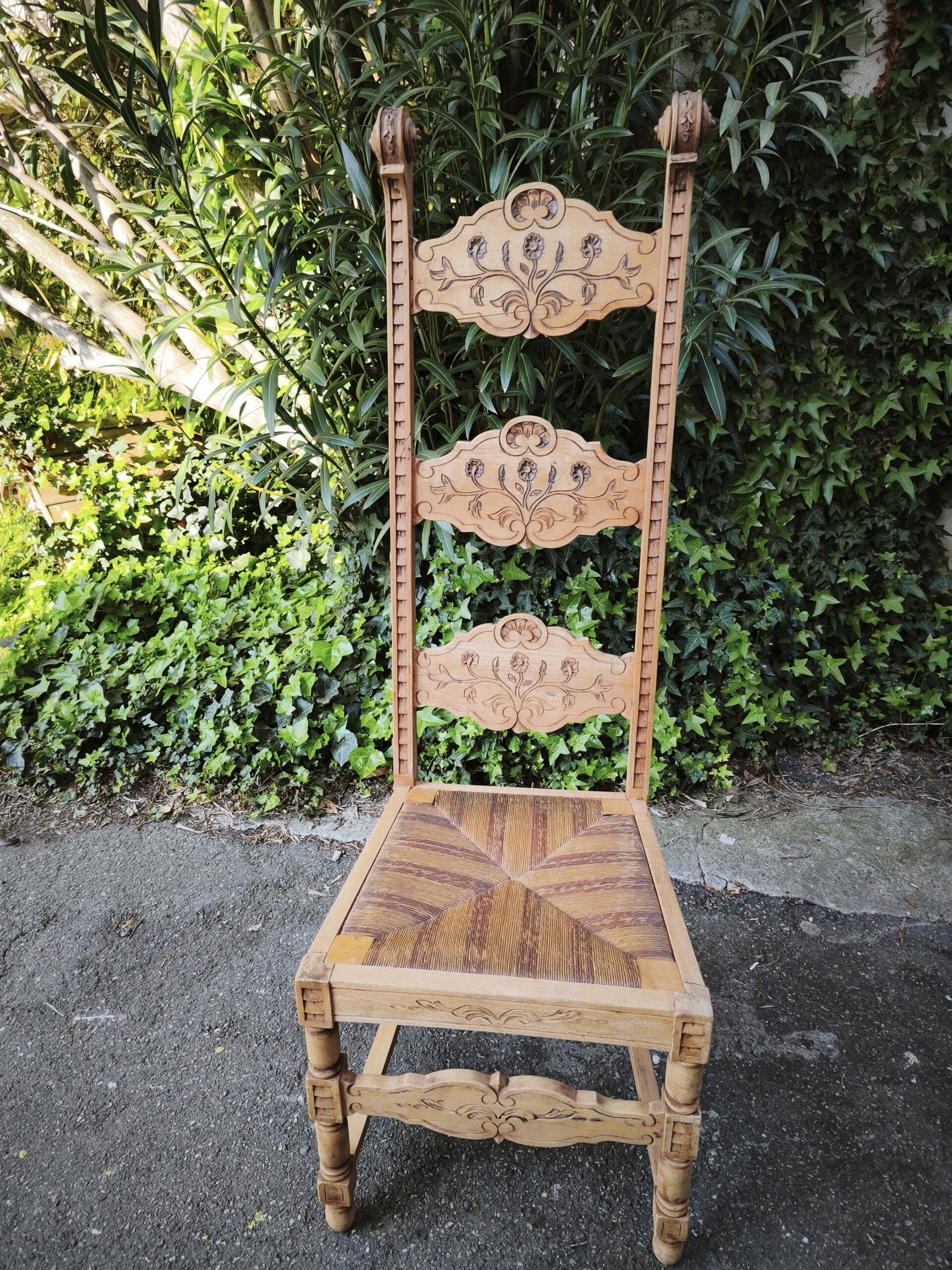 Belle chaise paillée à haut dossier