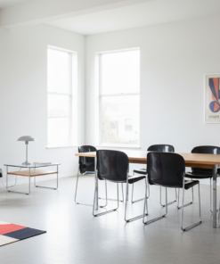 Fonctionnalité : Ce modèle est célèbre pour être parfaitement empilable, ce qui en faisait un choix de prédilection pour les espaces publics, les bureaux ou les salles de conférence.