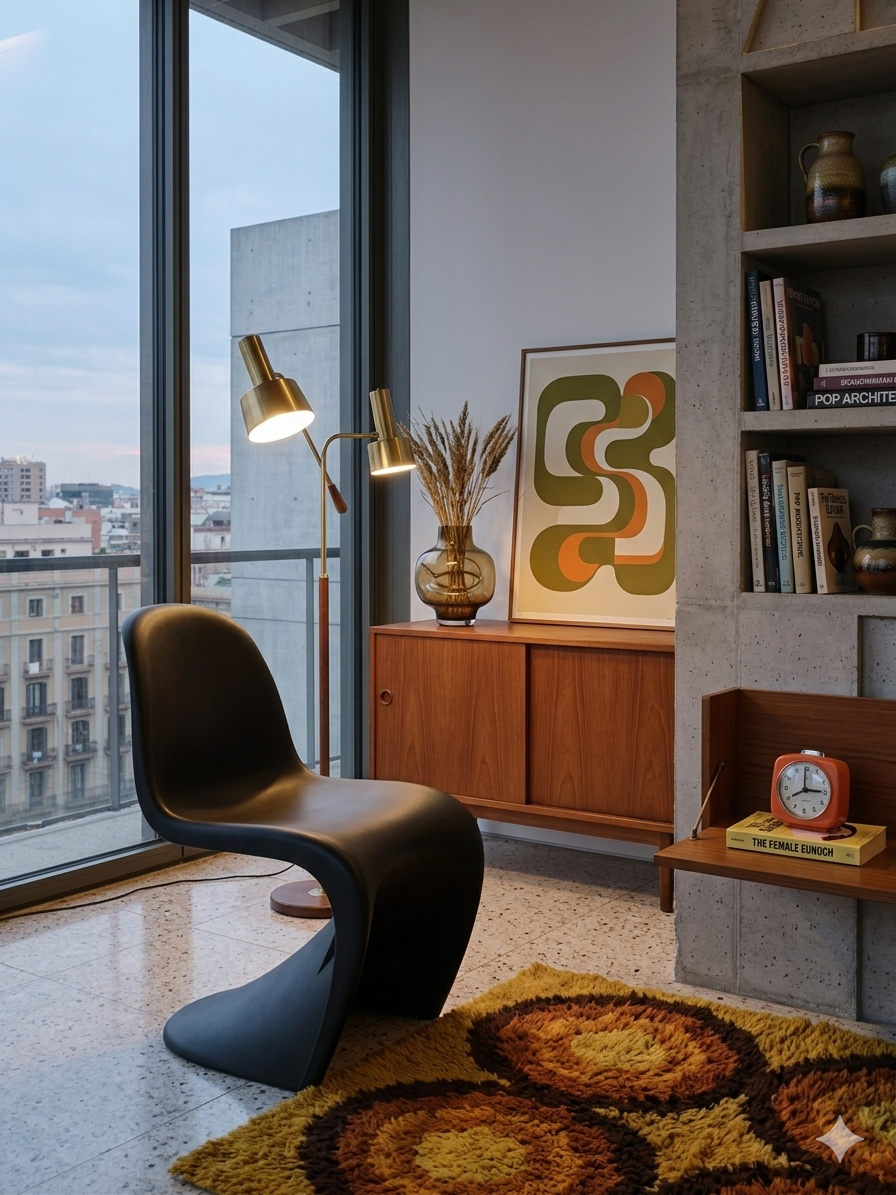 Elle incarne parfaitement le style « Pop Art » et futuriste de l’époque avec ses courbes organiques et sa forme en « S ».