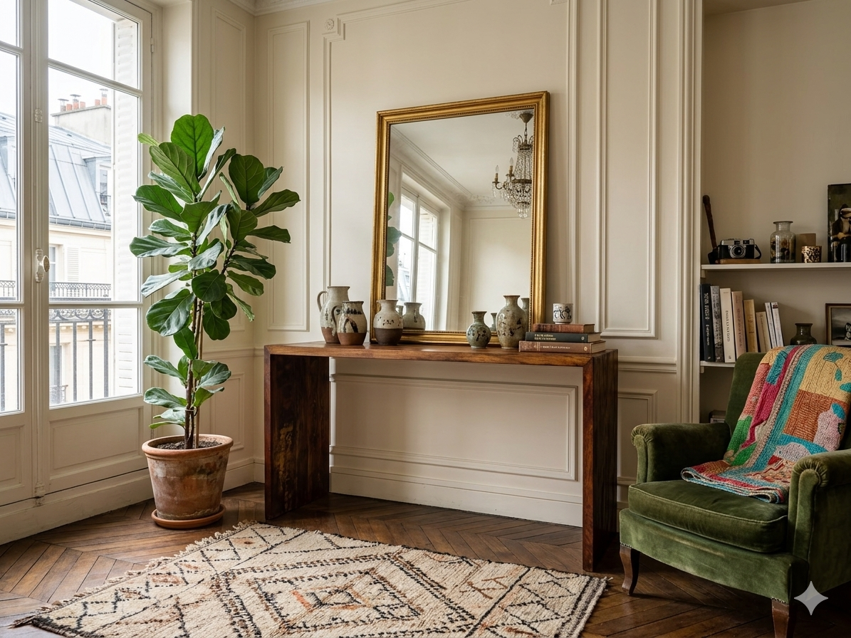 - Console chinoise de style « Table de Luth » (ou Qin Zhuo), caractérisée par son esthétique minimaliste et sa construction architecturale.