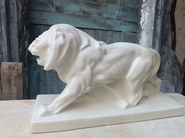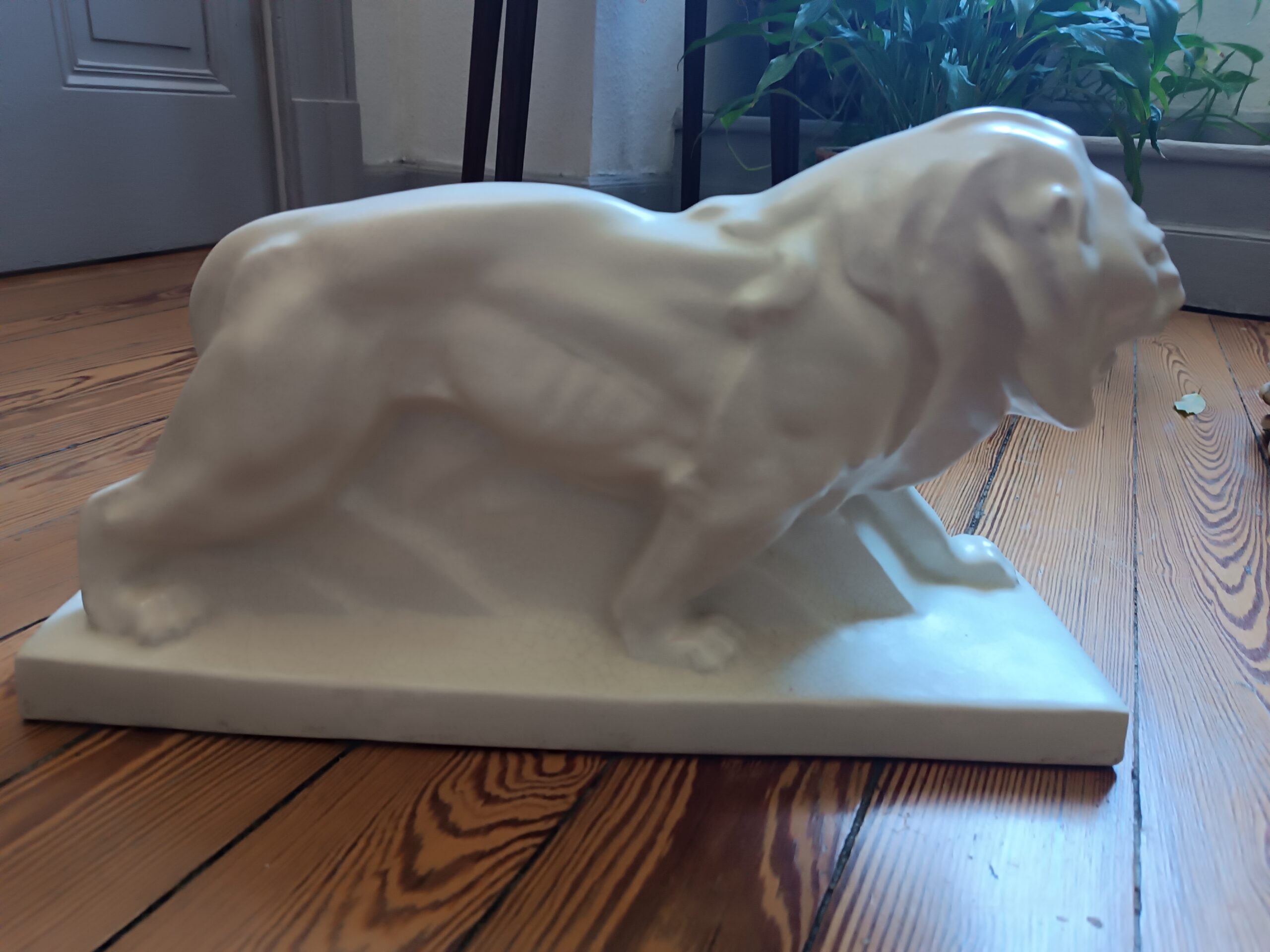 - Rare et Belle Sculpture Animale en Céramique Craquelé Représentant un Lion.