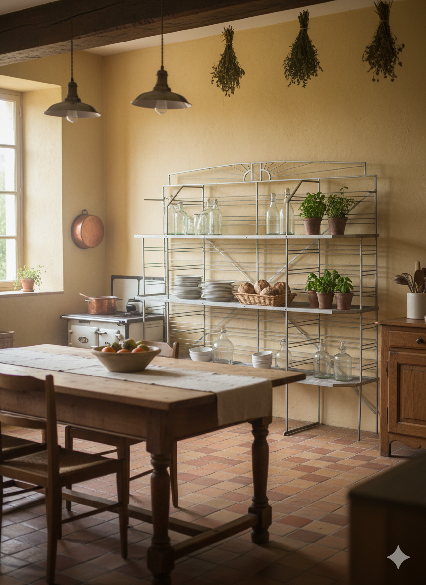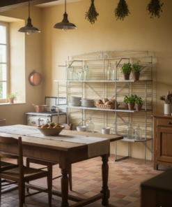 En intérieur : Elle est idéale dans une cuisine spacieuse pour ranger de la vaisselle, ou dans un salon comme bibliothèque aérée et originale.