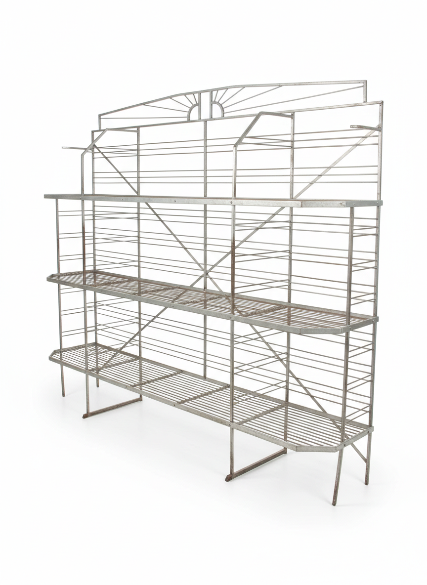 Cette pièce est une étagère de boulanger (souvent appelée « grille » ou « panetière ») au design assez singulier, alliant utilité industrielle et esthétique.