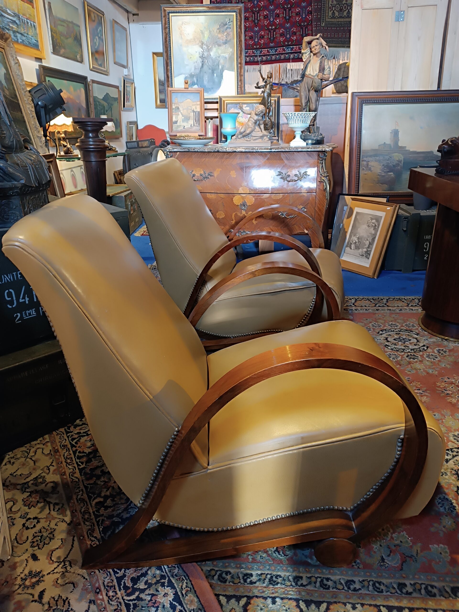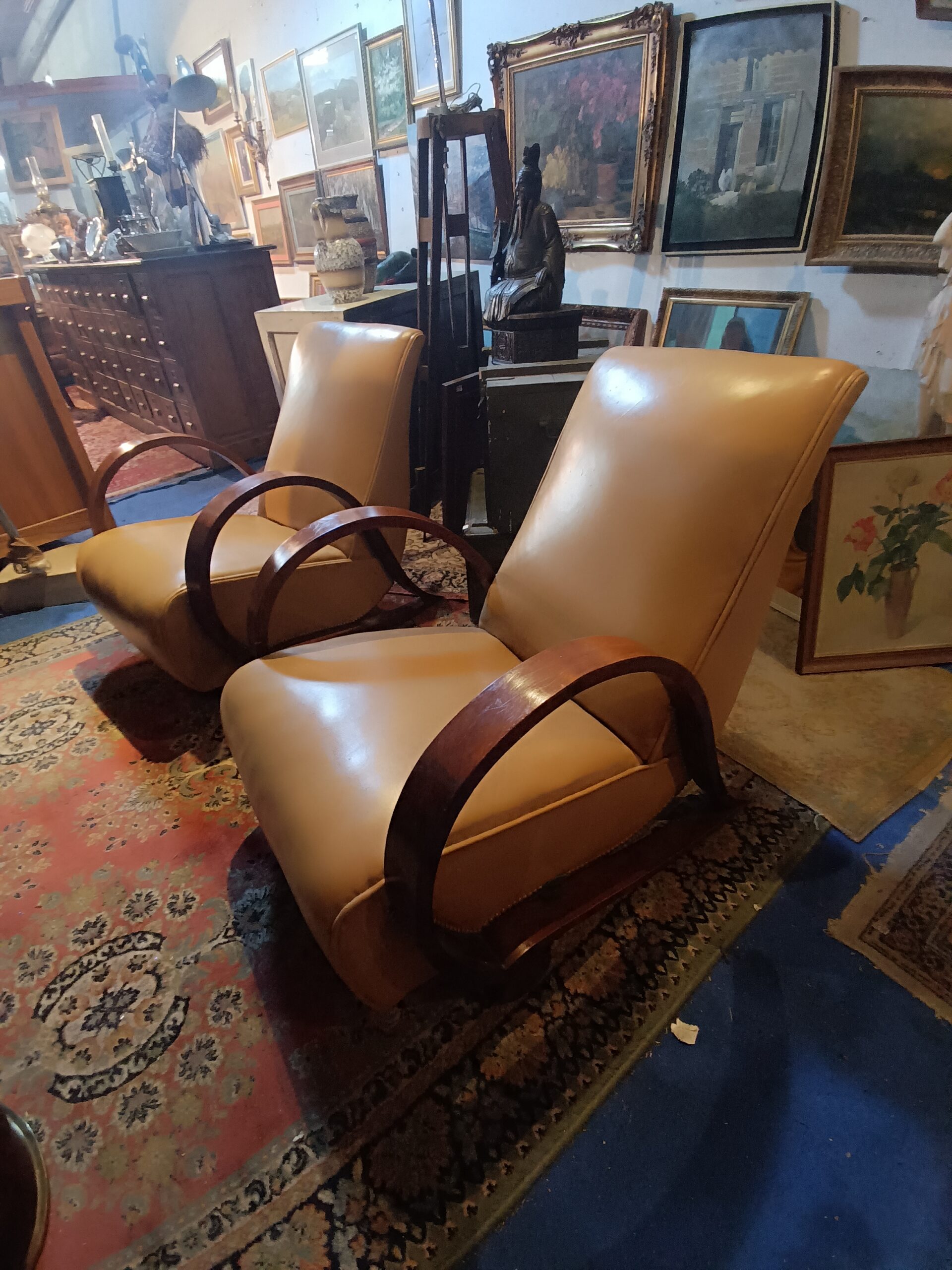 • Service Client Antiquités Brocante Toulouse Nouveau !!! Arrivage du jour Fauteuils Art Déco en Cuir (Paire) Epoque début XXème Echange