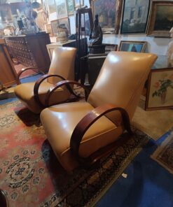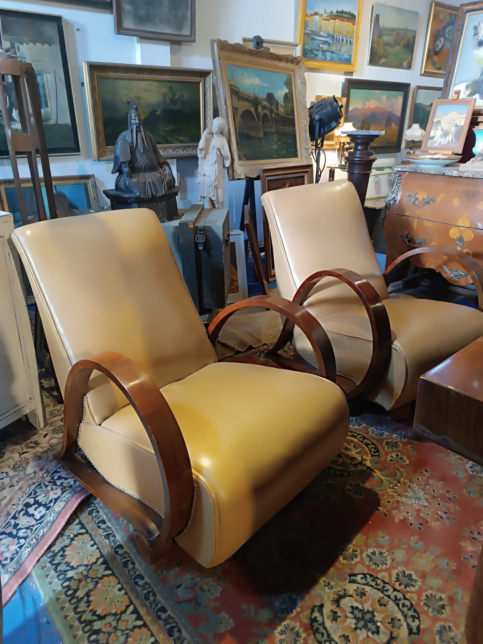 • Antiquités Brocante Fauteuils Art Déco en Cuir (Paire) Epoque début XXème les Puces d’Oc Quartier St Cyprien antiquités à Toulouse (31)