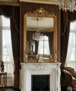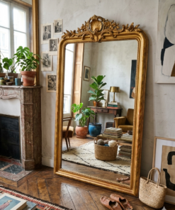 Ce type de miroir, souvent appelé « cheminée », était initialement conçu pour être posé sur un manteau de cheminée en marbre, mais il s’adapte aujourd’hui parfaitement posé au sol ou fixé au mur dans un intérieur moderne pour agrandir l’espace.