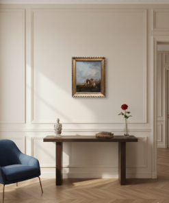 - C’est une œuvre charmante qui s’inscrit dans la tradition des scènes de genre pastorales, très probablement inspirée par l’école hollandaise ou flamande du XVIIe