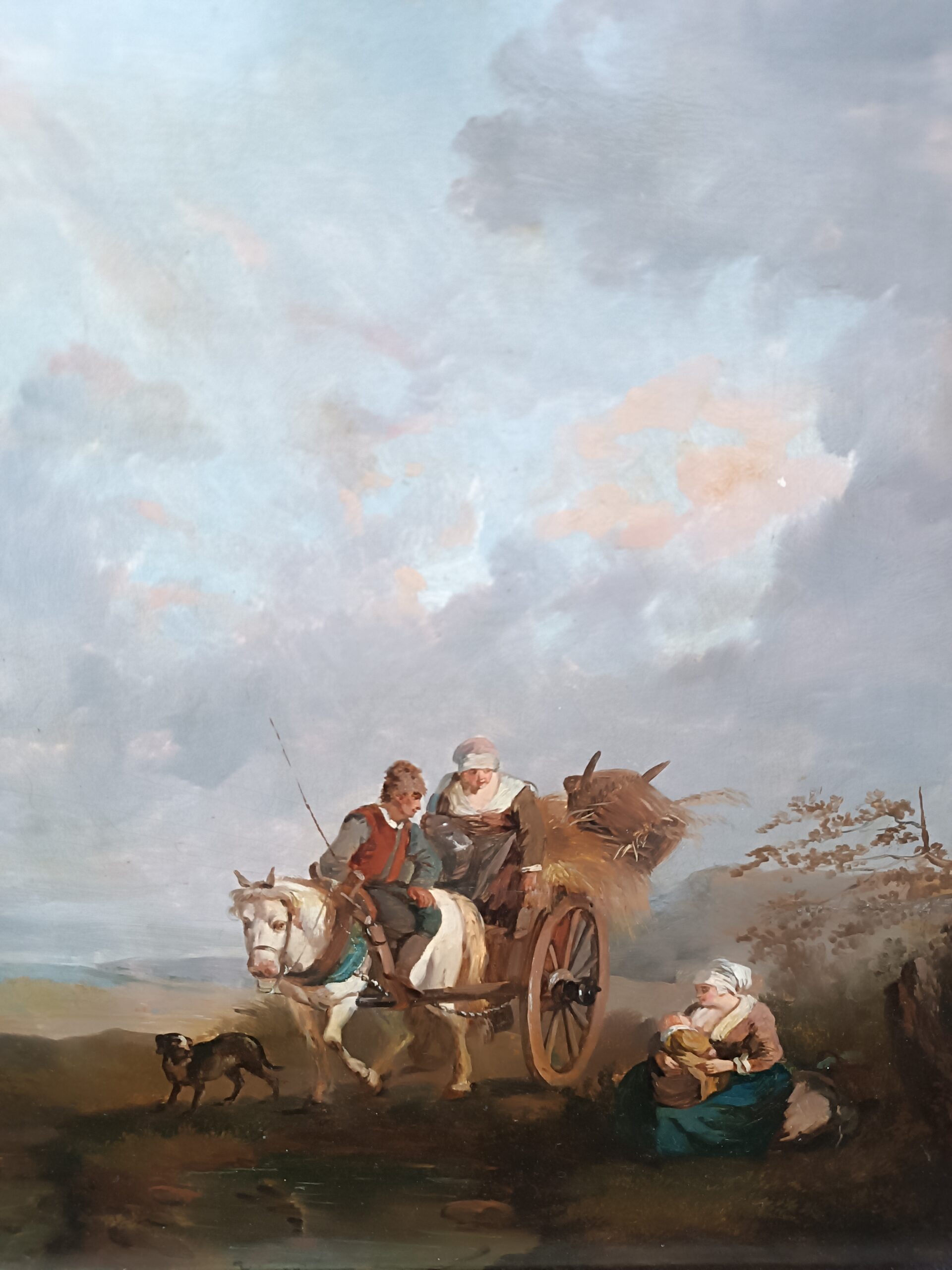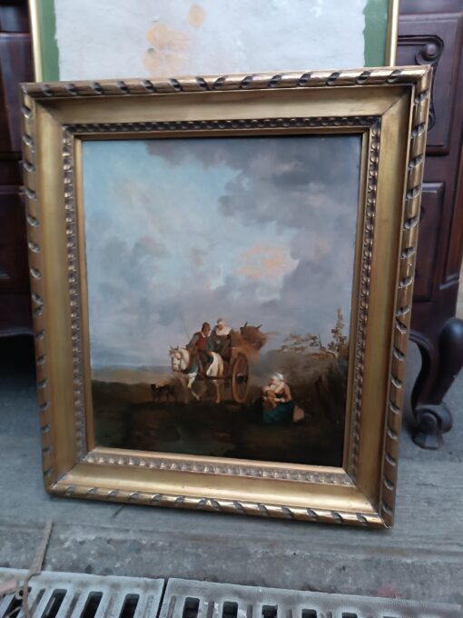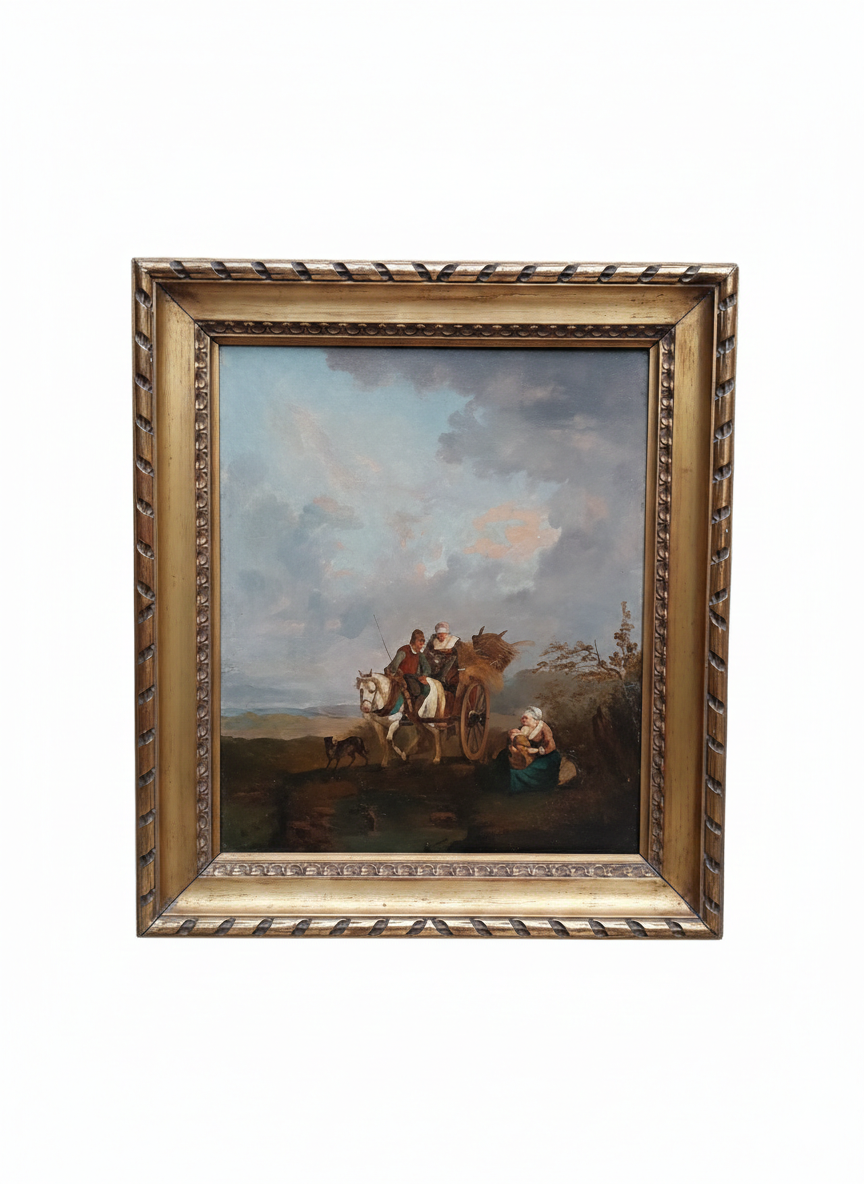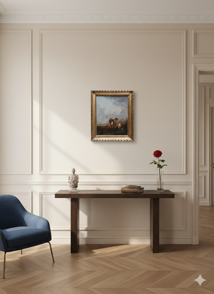 - C’est une œuvre charmante qui s’inscrit dans la tradition des scènes de genre pastorales, très probablement inspirée par l’école hollandaise ou flamande du XVIIe