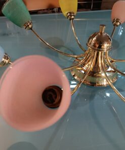 • Brocante : Objets Mobilier Antiquités Toulouse Lustre 70 Vintage à huit Tulipes de couleurs