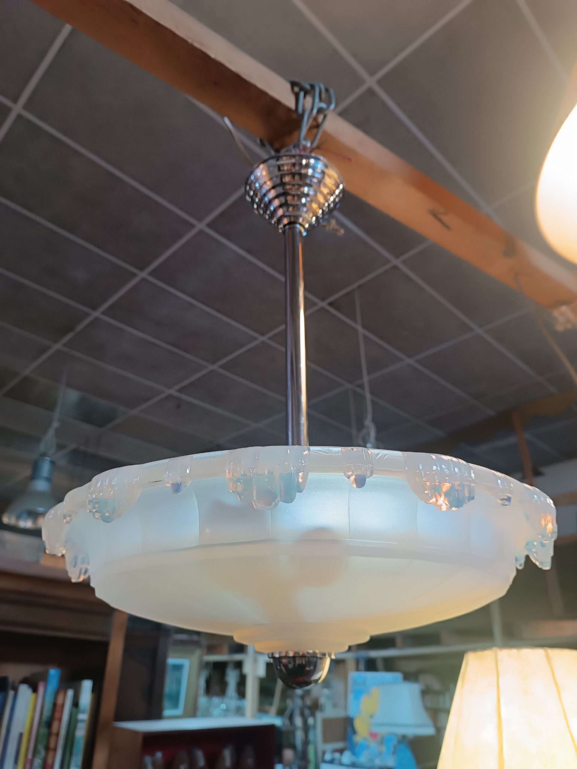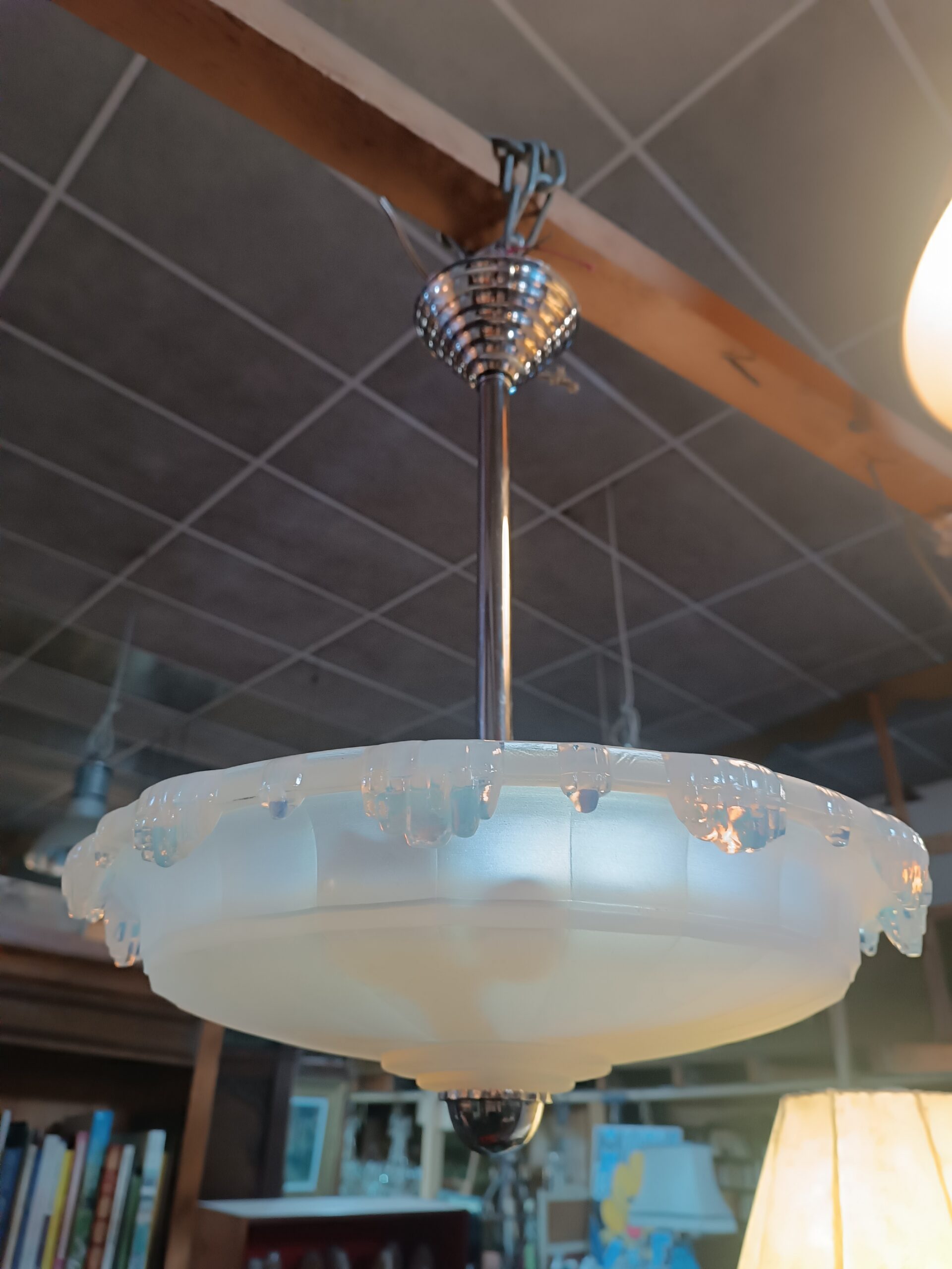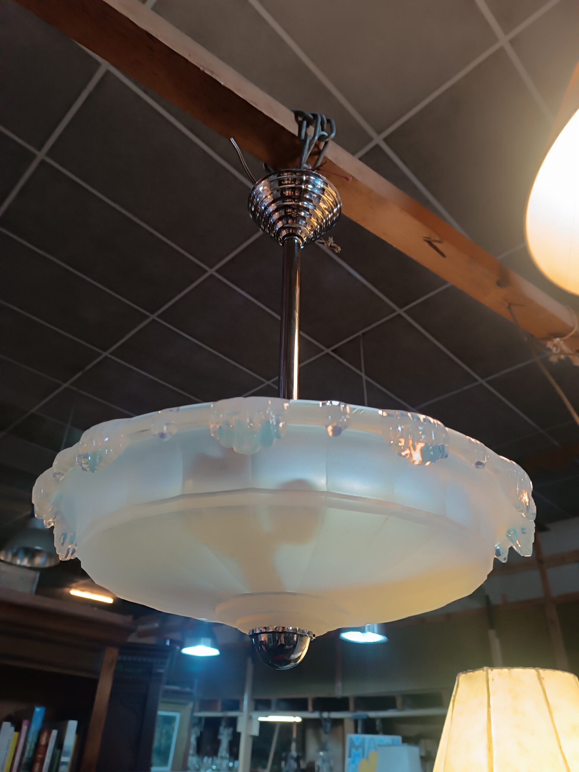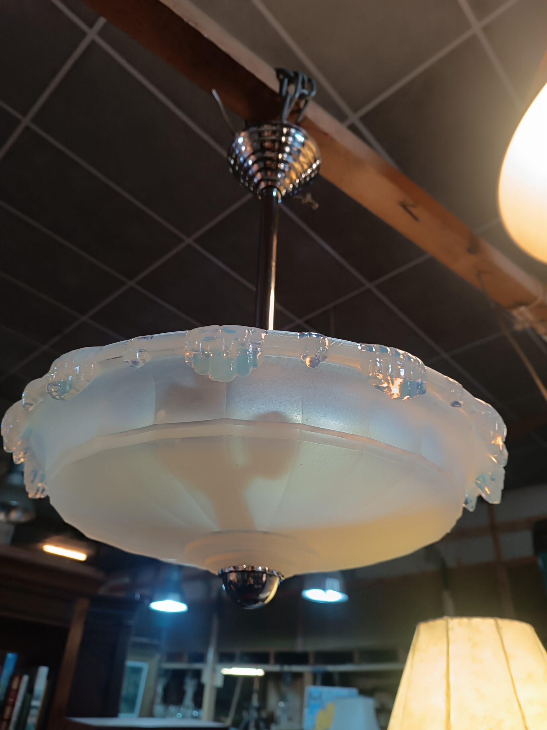 Lustre Art déco Coupe en Verre Opalescent Epoque 1930