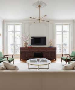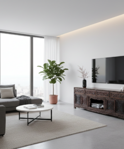 Meuble Bas Chinois Panneaux décors sculptés Epoque XXème