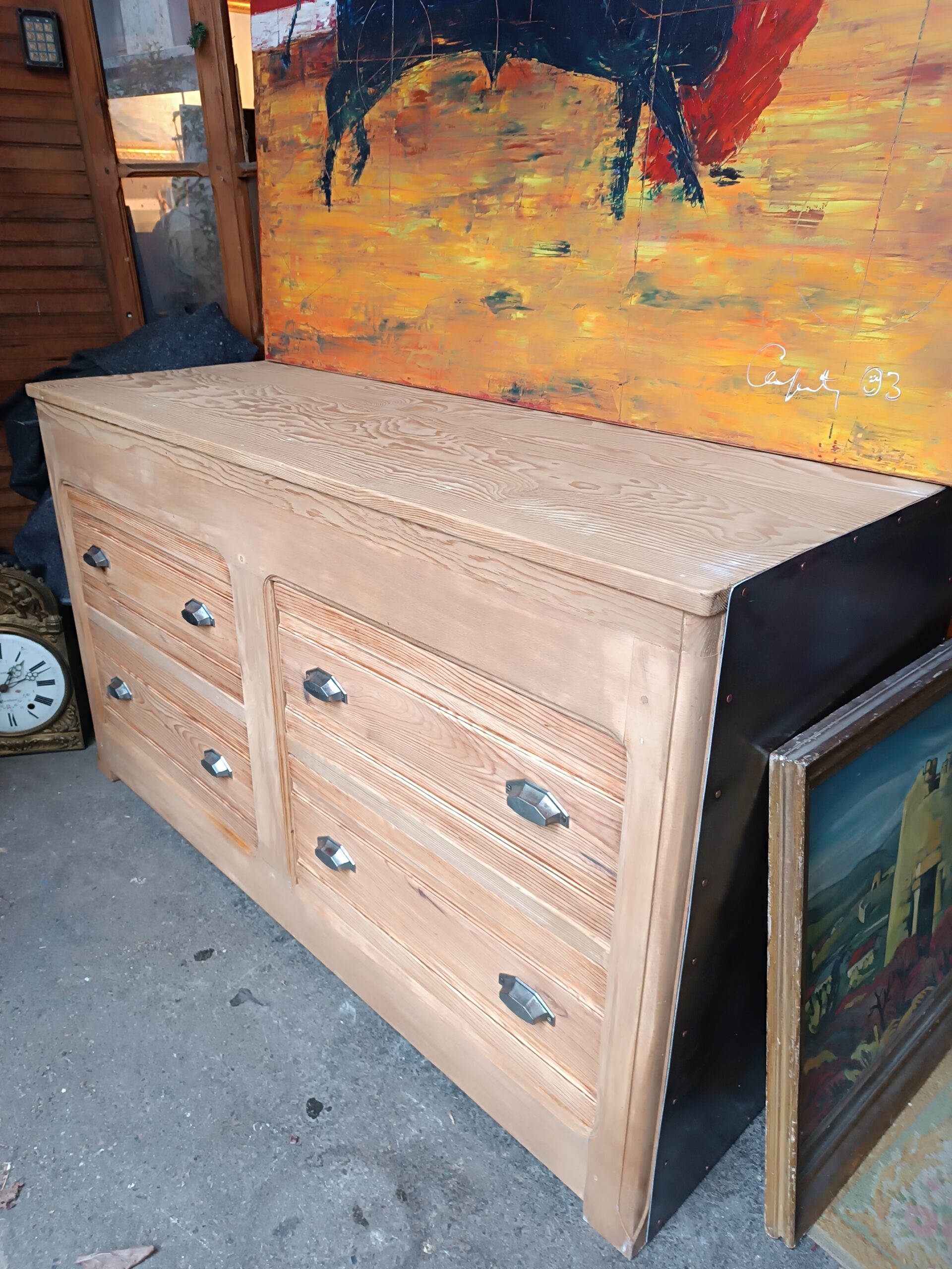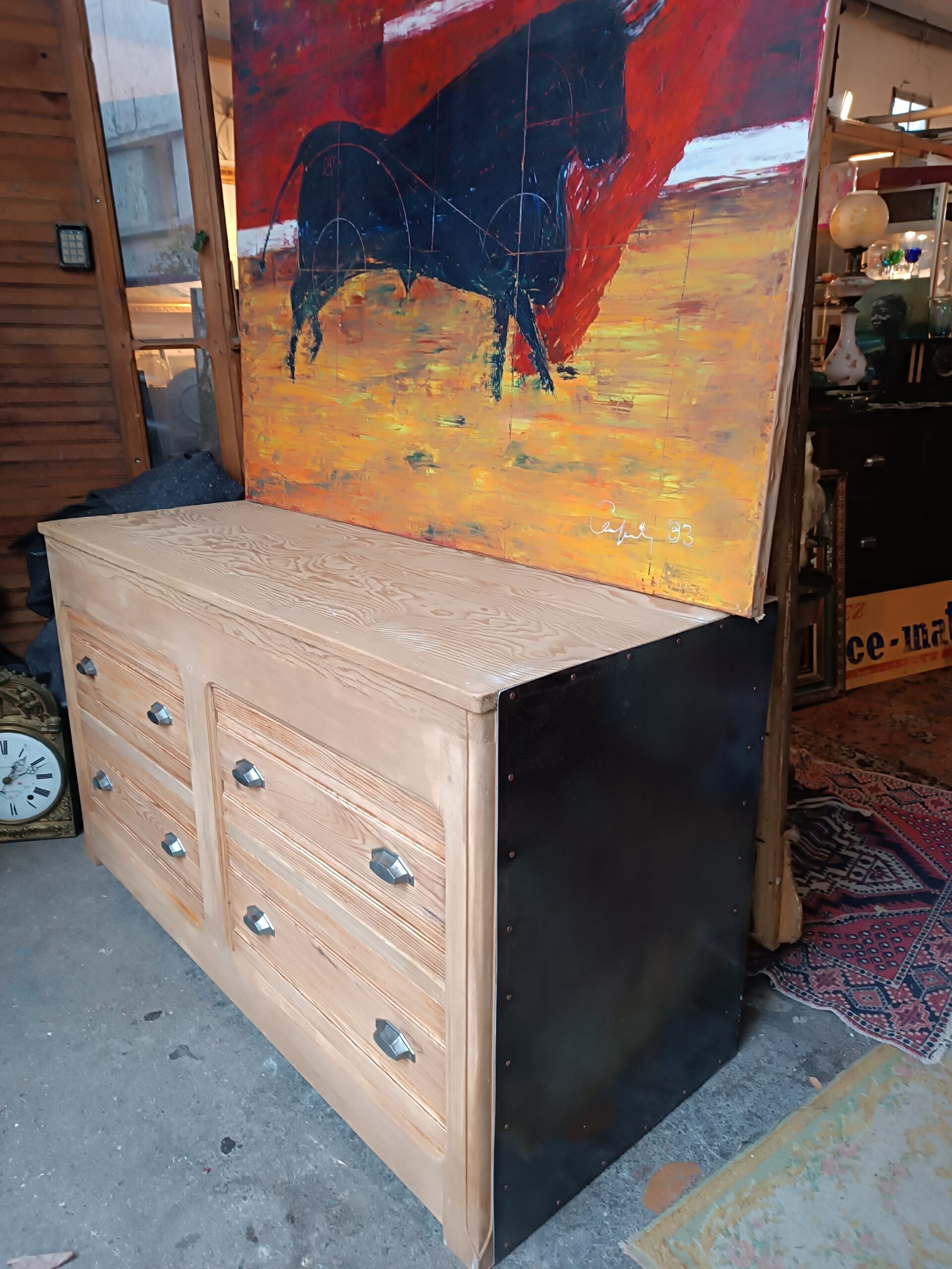 • Antiquités Brocante Toulouse Nouveau Meuble d’Atelier Commode en Pin Massif et côtés en Métal les Puces d’Oc Quartier St Cyprien antiquités à Toulouse (31)