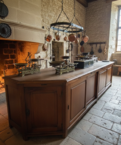 Dans un commerce moderne : Pour servir de comptoir d’accueil dans une boutique de luxe, un hôtel ou un restaurant, apportant immédiatement un cachet historique au lieu.