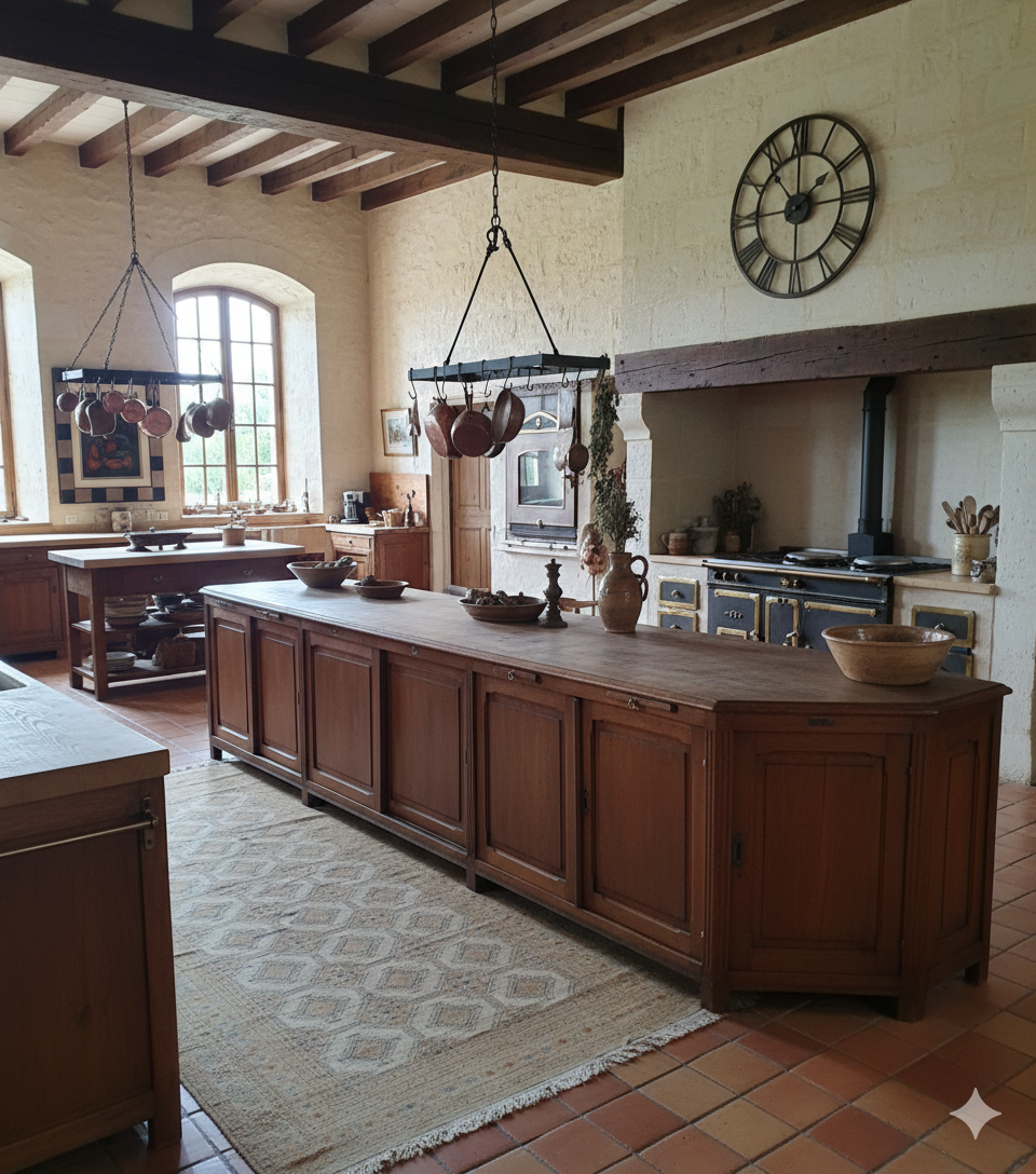En cuisine : Comme îlot central ou buffet XXL pour ranger toute la vaisselle et l’électroménager.