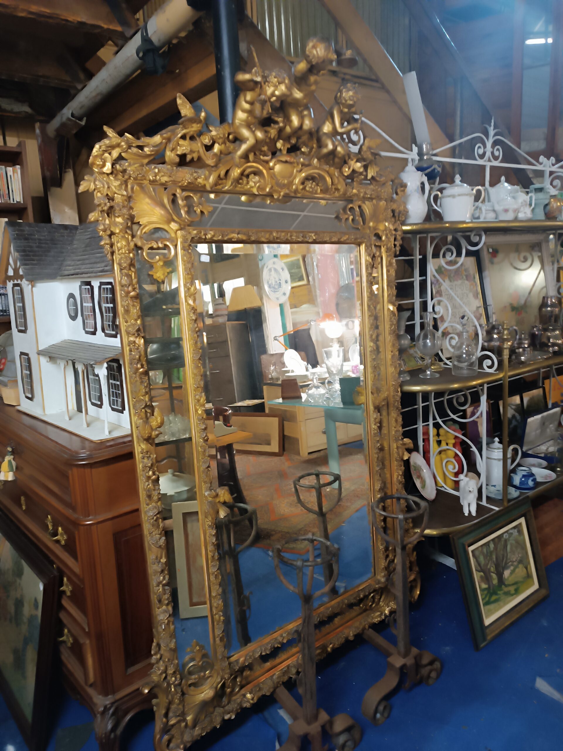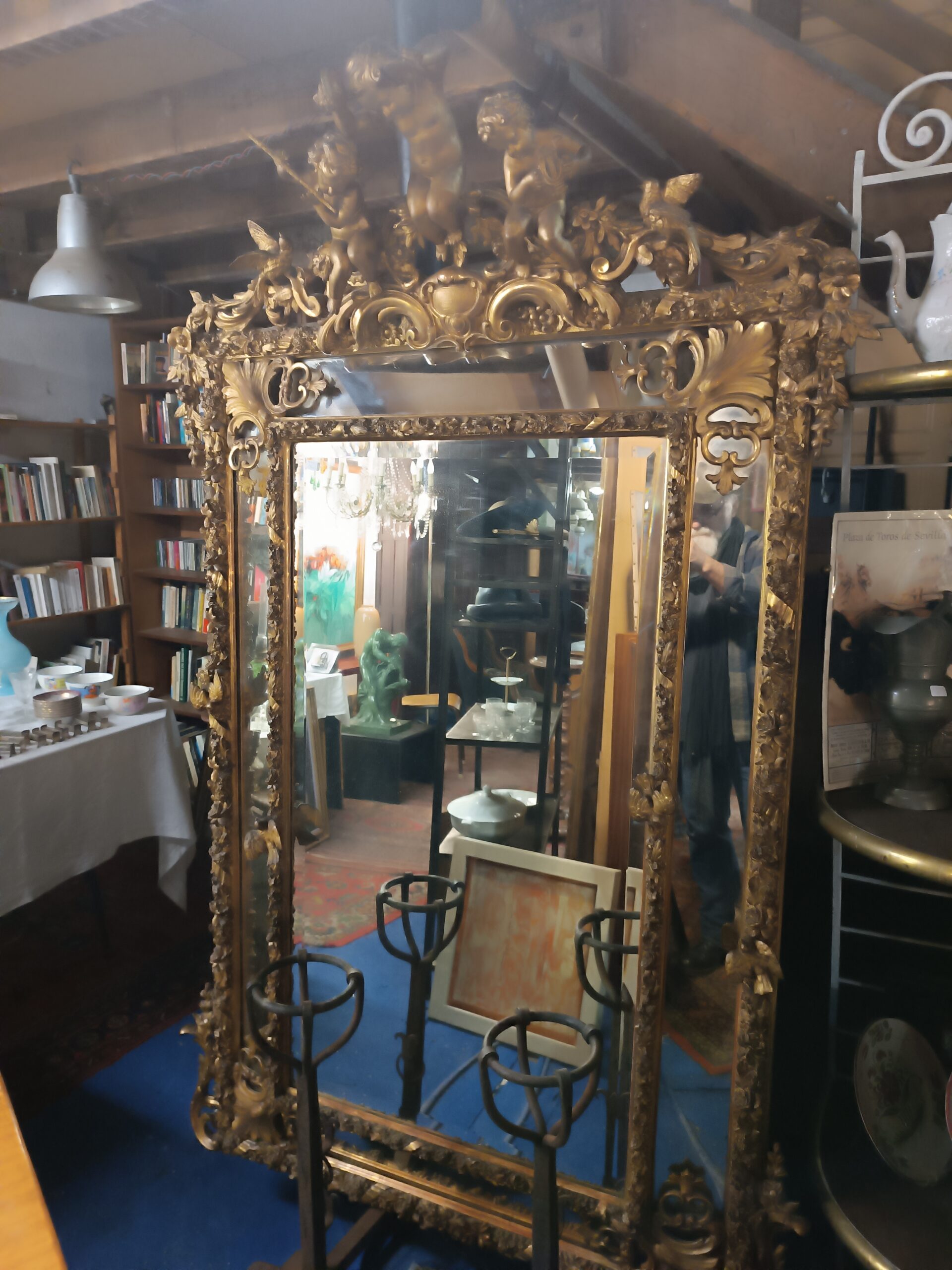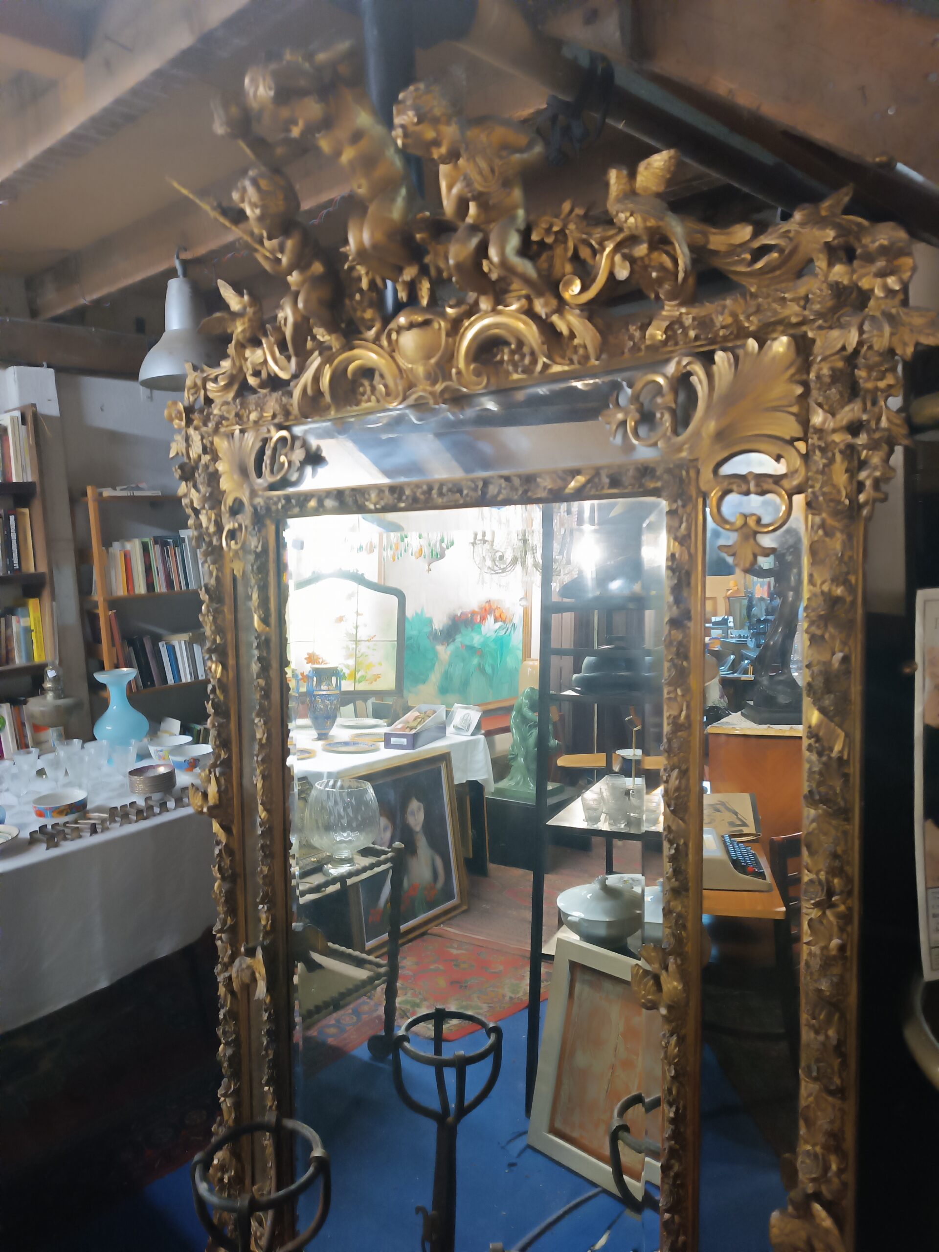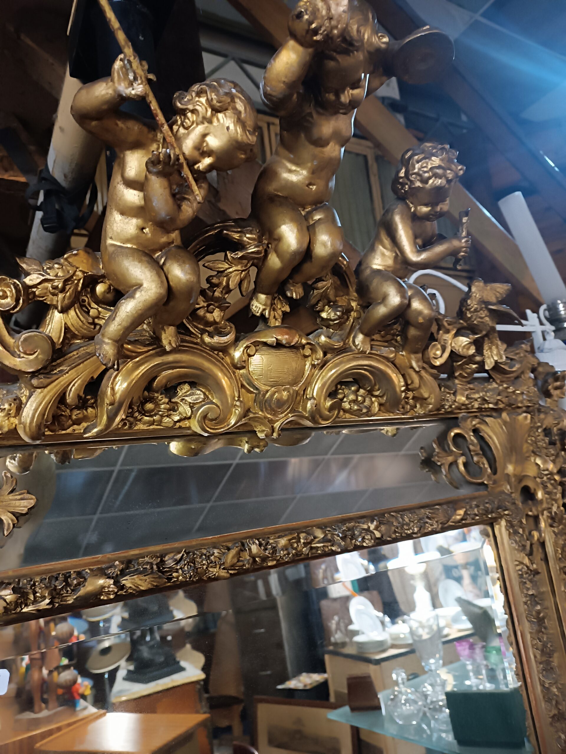 Miroir Napoléon III Doré a Parecloses frontons à décors d’amours musiciens