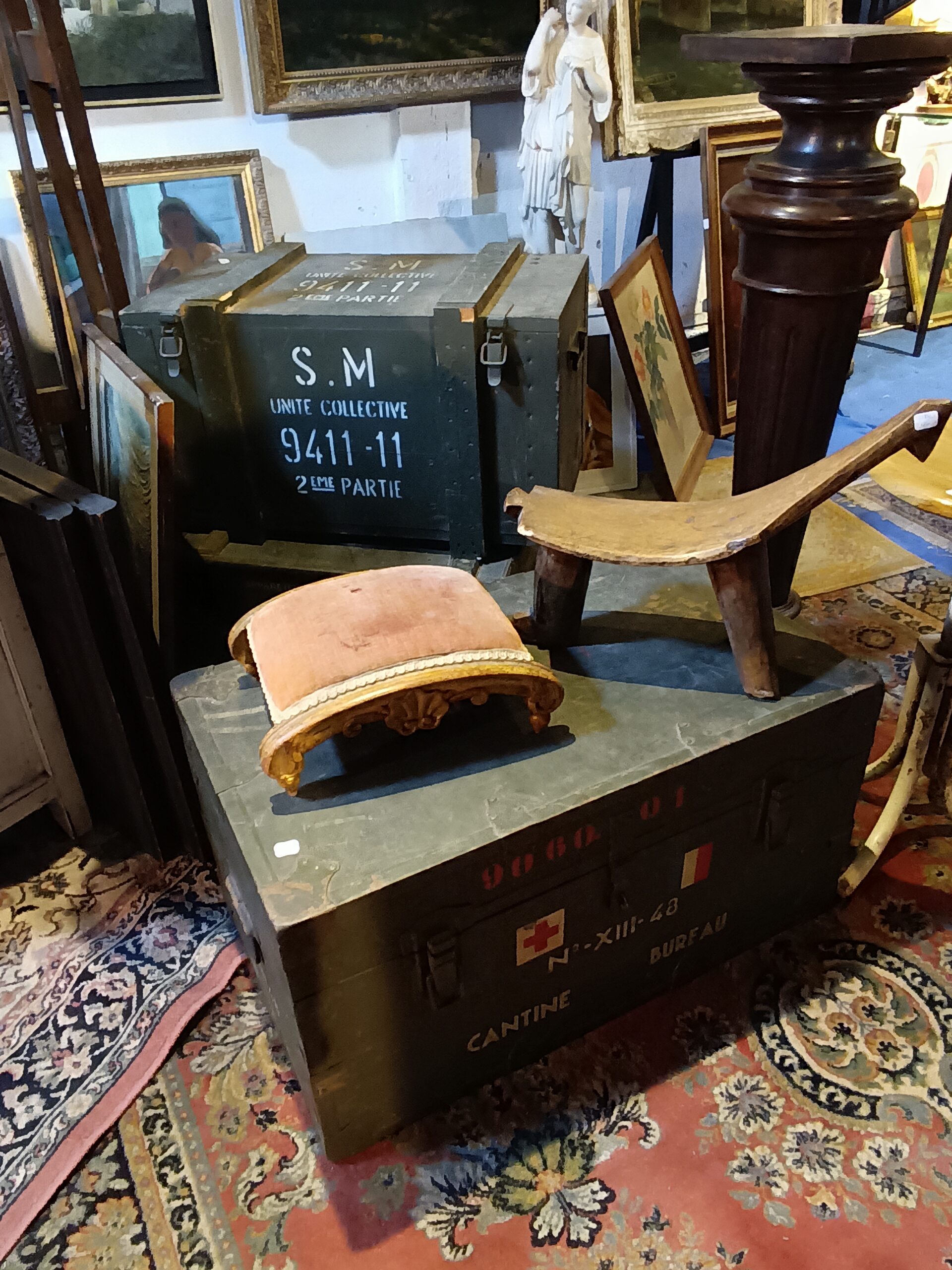 Un large choix de sièges et fauteuils d’occasion, tables, buffets anciens, armoires, tableaux anciens et modernes, bronzes, objets de vitrine, collection…..