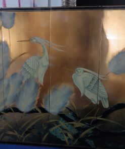 Magasin: Antiquités Brocante Toulouse Chine quadriptyque sur panneaux en Bois Laqué à décors d’ibis Epoque deuxième moitié du XXème