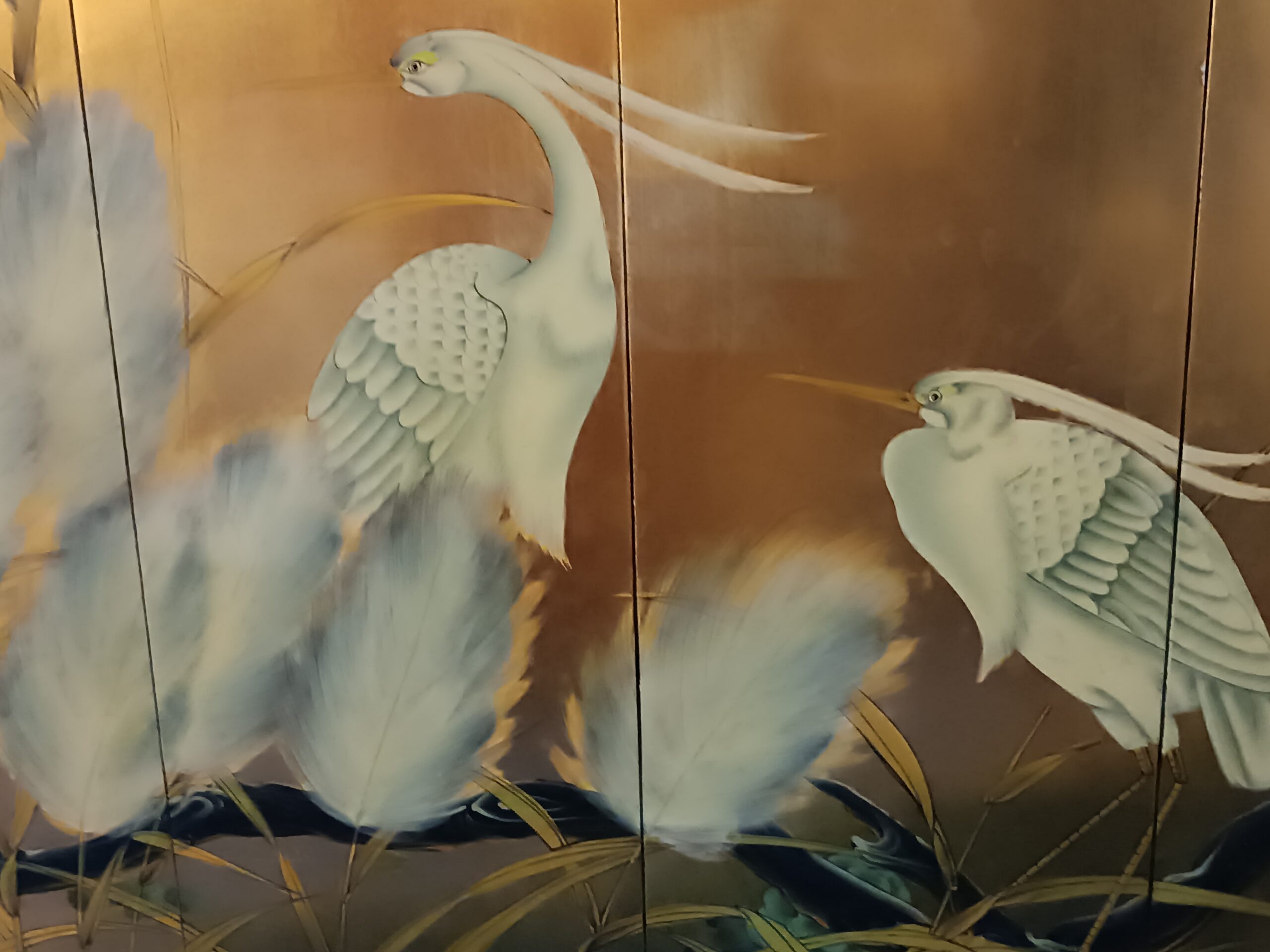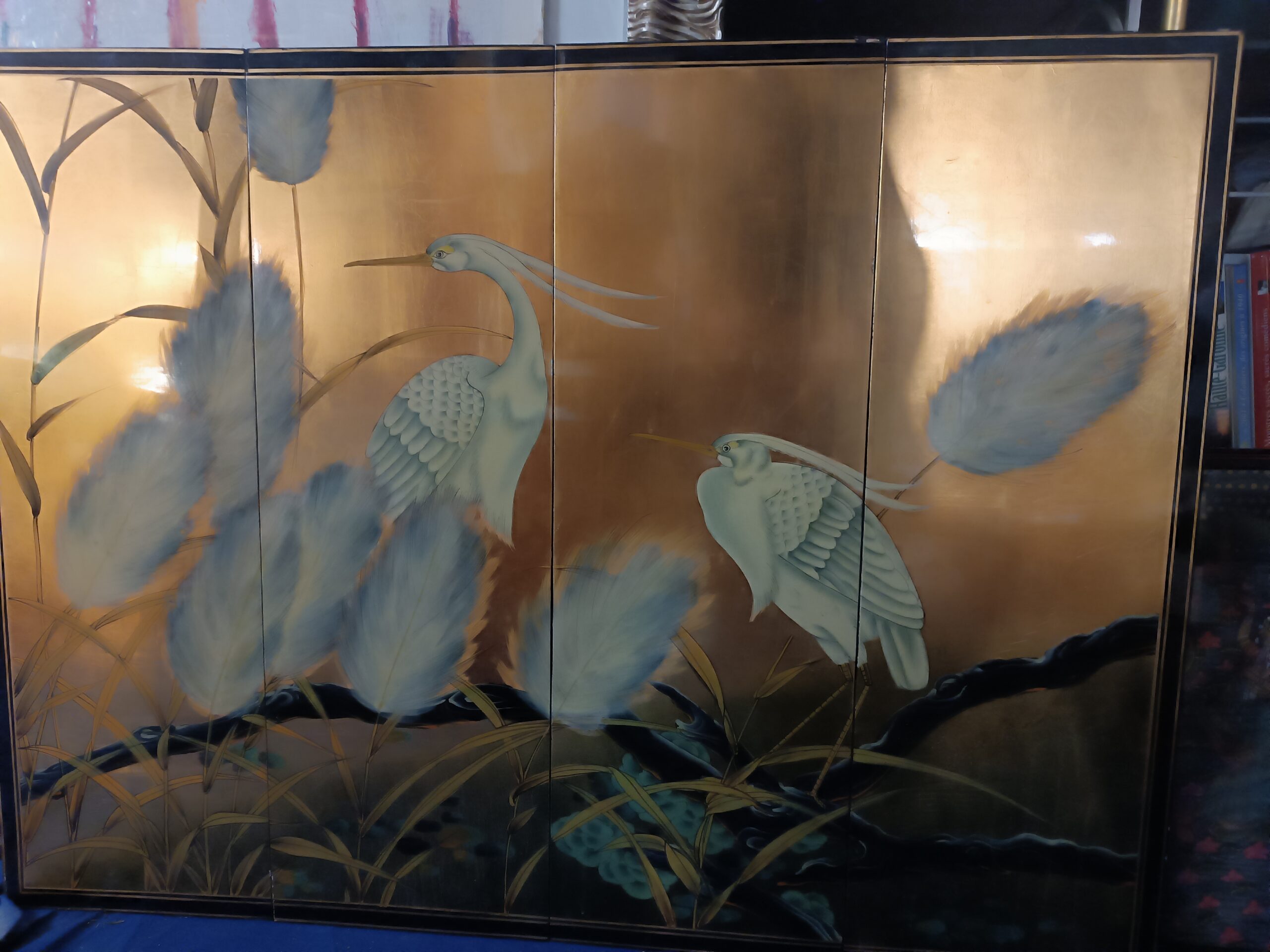 Magasin: Antiquités Brocante Toulouse Chine quadriptyque sur panneaux en Bois Laqué à décors d’ibis Epoque deuxième moitié du XXème