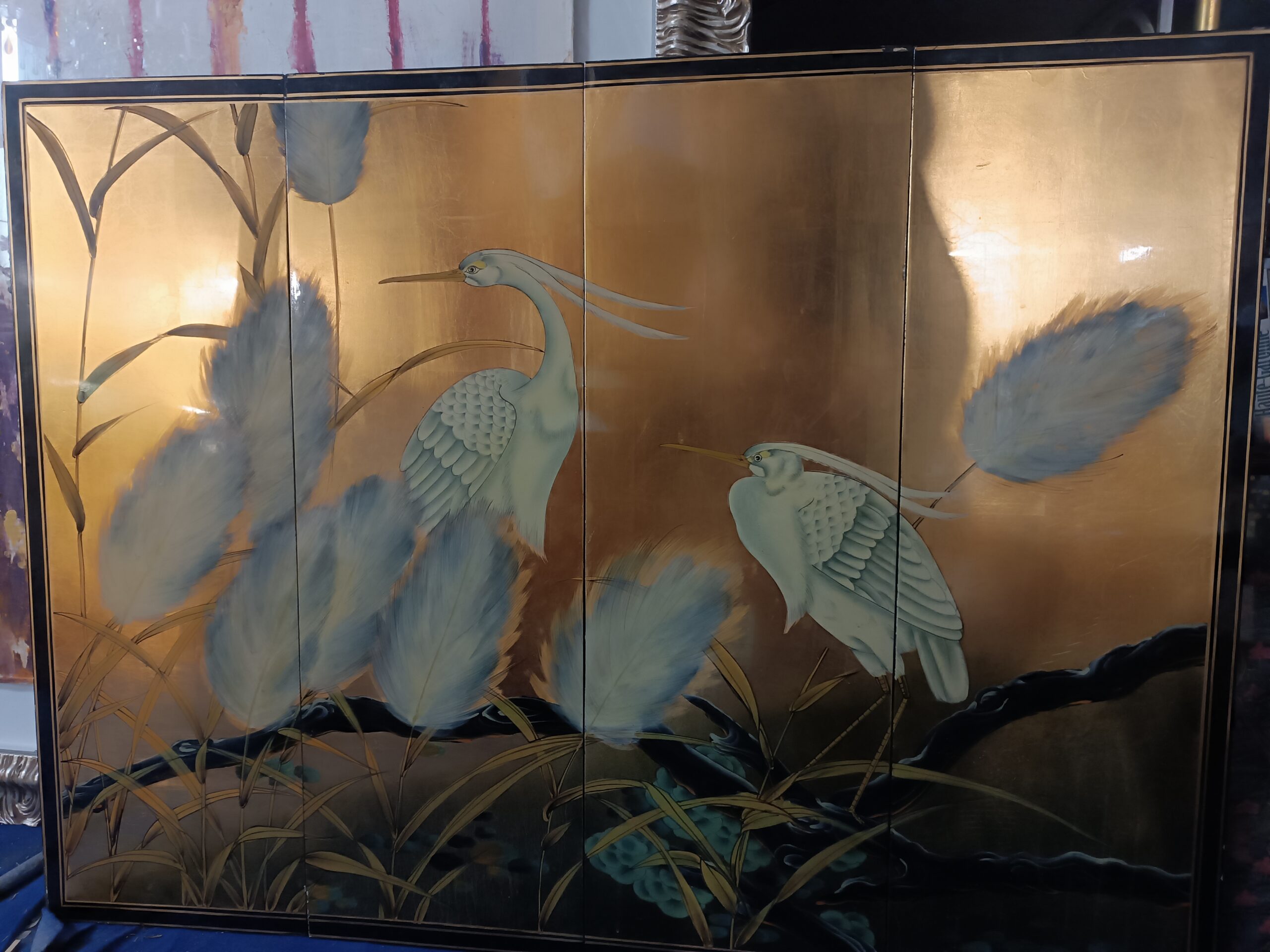 • Antiquités Brocante Toulouse Paravent Chine quadriptyque sur panneaux en Bois Laqué à décors d’ibis Epoque deuxième moitié du XXème Nouveautés les Puces d’Oc Quartier St Cyprien antiquités à Toulouse (31)