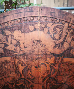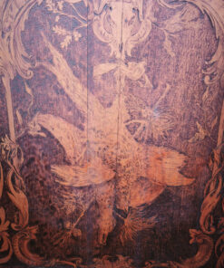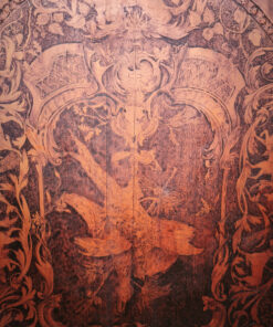 Ce panneau en bois pyrogravé est un exemple remarquable d’art populaire ou décoratif, issu du début du XXe siècle, daté au dos 1909.