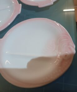Faïence avec un dégradé de couleur rose sur les bords, ce qui lui donne un aspect nacré et très doux.