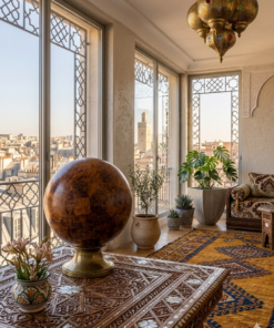 Cette superbe sphère est un magnifique exemple d’artisanat, mettant en valeur la richesse du bois de loupe de thuya. Originaire principalement des montagnes de l’Atlas au Maroc, ce bois est particulièrement prisé pour son esthétique unique et complexe.