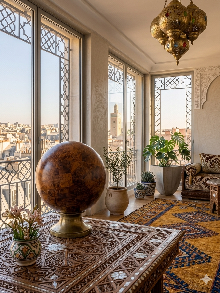 Cette superbe sphère est un magnifique exemple d’artisanat, mettant en valeur la richesse du bois de loupe de thuya. Originaire principalement des montagnes de l’Atlas au Maroc, ce bois est particulièrement prisé pour son esthétique unique et complexe.