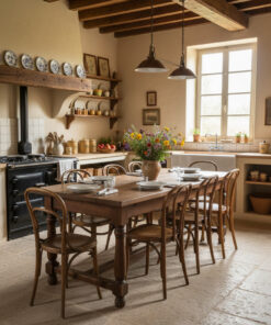 Une grande cuisine conviviale ou une salle à manger au style campagne chic.