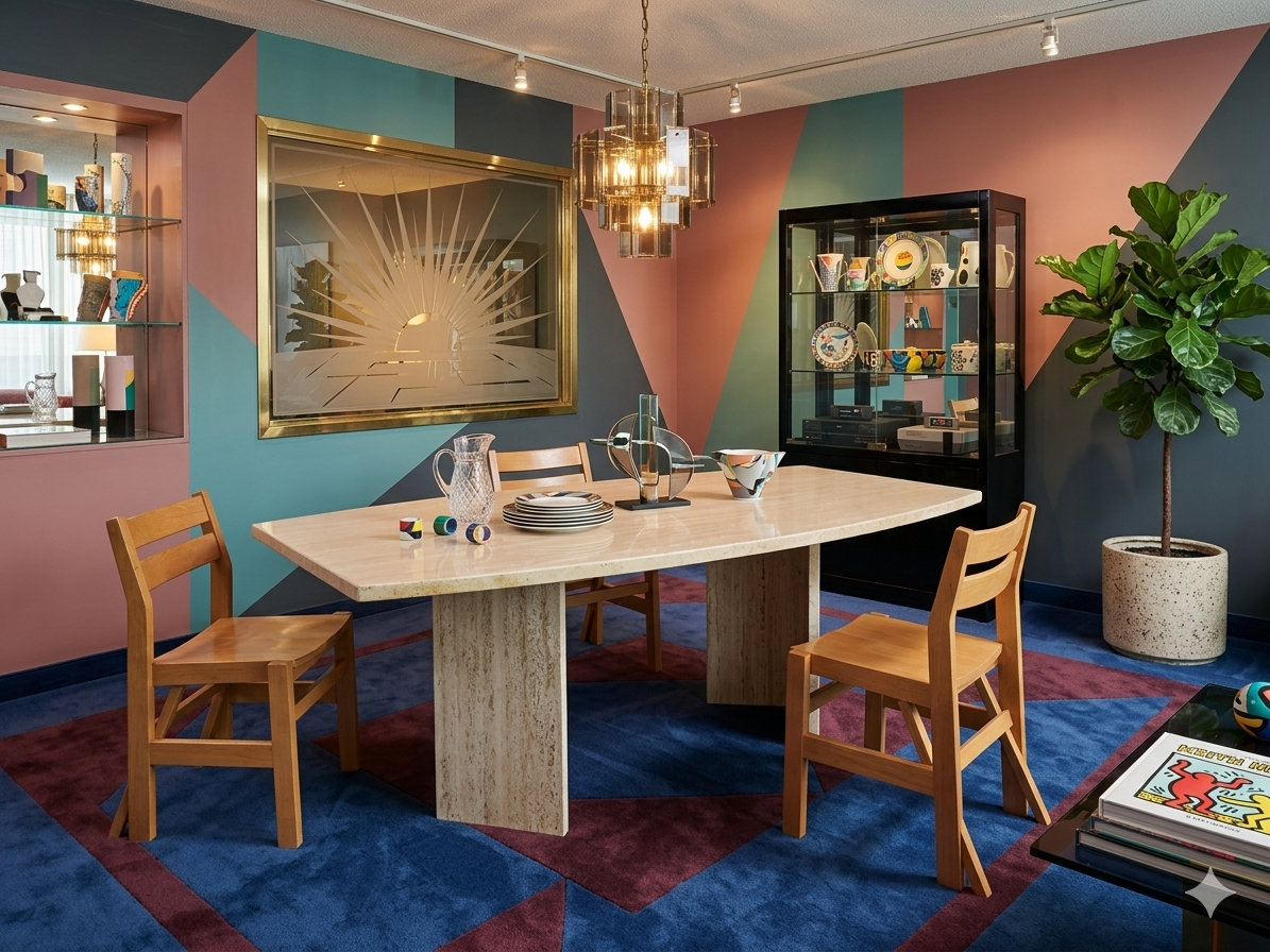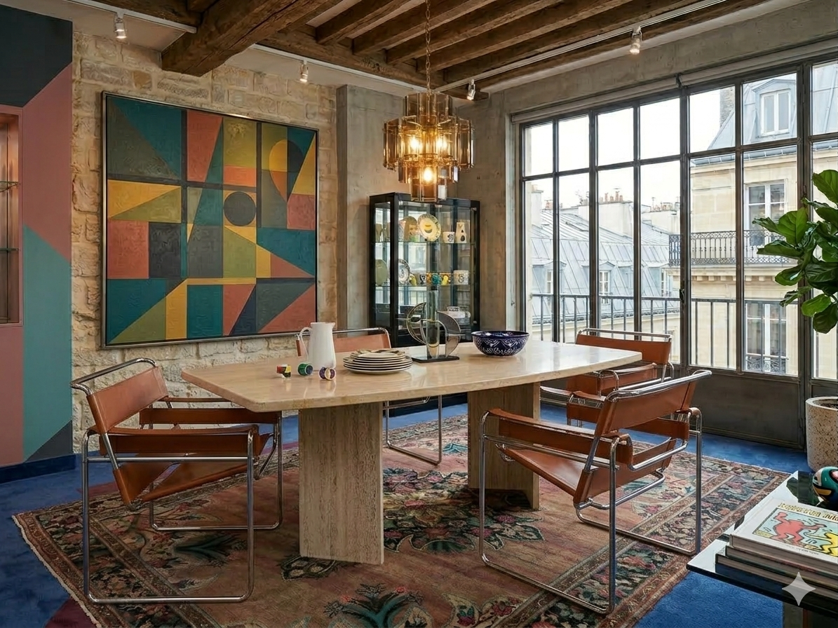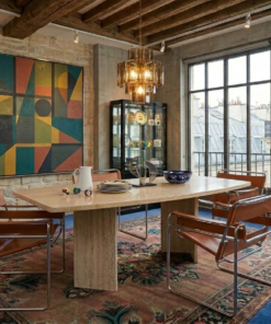 Le mobilier des années 70-80 connaît un immense regain d’intérêt. Cette table s’intègre parfaitement dans plusieurs styles de décoration :