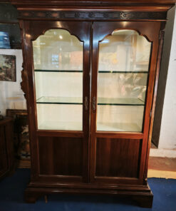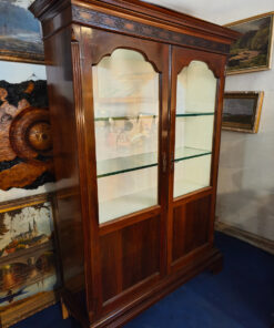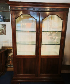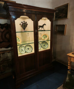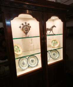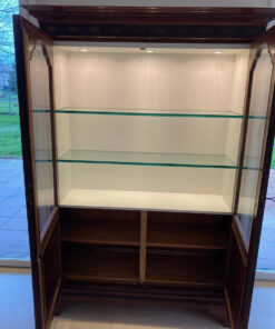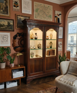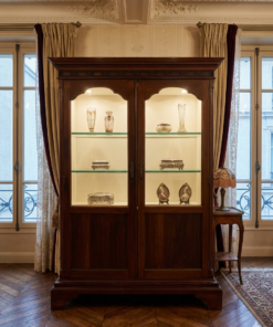 Cette magnifique vitrine allie le charme de l’ébénisterie classique à une fonctionnalité moderne. C’est une pièce imposante qui semble conçue pour mettre en valeur des objets de collection