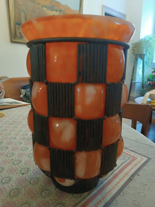 Catalogue Qualité Authentique Garanti Articles & Produits : Objets Mobilier Antiquités Brocante Toulouse Vase Art Déco Pâte de Verre soufflée dans une armature en Fer Forgé attribution Daum/Majorelle les Puces d’Oc Quartier St Cyprien